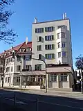 Expressionismus, Neues Bauen, damals höchstes Wohnhaus in Feuerbach, Teil eines Gesamtkomplexes[1] |