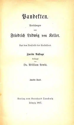 - Vorlesungen über die Pandekten, 1861 (hrsg. v. Friedberg, 2 Bde., 2. Aufl. 1867)