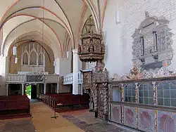 II/P | 9 | Die Orgel ist erhalten. Sie wurde 1999 restauriert durch die Firma Wolter aus Zudar (Rügen).[28][29] Orgel |