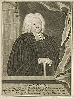 - Schultze, Friedrich, der heil. Schrifft Doctor. In: Johann Heinrich Zedler: Grosses vollständiges Universal-Lexicon Aller Wissenschafften und Künste. Band 35, Leipzig 1743, Sp. 1624–1626.