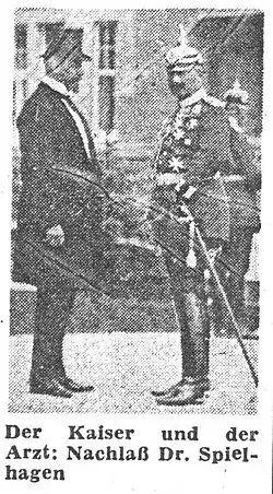 Friedrich Gottfried August Spielhagen (* 20. Oktober 1864 in Magdeburg; † 30. April 1931 in Kronberg im Taunus) war Sanitätsrat in Kronberg im Taunus und Leibarzt der Kaiserin Victoria („Kaiserin Friedrich“) (1840–1901), der Mutter von Kaiser Wilhelm II. (1859–1941).