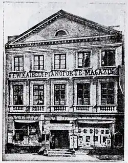 Das Ladengeschäft und die Wohnung der Familie Kaibel befanden sich anfangs im Haus Königstraße 83 (damals Johannis Quartier 855). Angeschlossen war ein Leihinstitut für Noten und Aufführungsmaterial. Später kam ein eigener Verlag hinzu. Von 1848 bis 1903 befand sich die Musikalienhandlung und Pianoforte-Magazin im Haus Breite Straße 35 (ehemals 787 Jakobi Quartier), das dann um 1908 abgebrochen wurde.