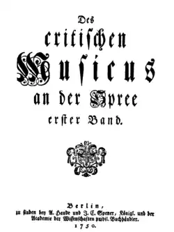 - Kritische Einleitung in die Geschichte und Lehrsätze der alten und neuen Musik, 1759.