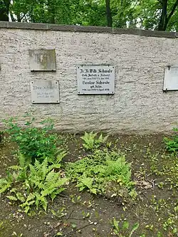Friedrich Wilhem Schwabe gehörte zu den etwa 20 Männern, die 1805 den Sarg des Dichters Friedrich Schiller zur Beisetzung im Kassengewölbe auf dem Jacobsfriedhof tragen durften.[15]