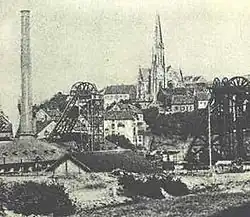 Das kleine Dorf Bildstock, das 1816 nur 61 Einwohner zählte, wuchs im Verlauf des 19. Jahrhunderts dank des Bergbaus zu einer florierenden Ortschaft heran. 1858 wurde der erste Tiefbauschacht abgeteuft.[8] Mehrere Steinkohlegruben entstanden im Ortsgebiet und führten dazu, dass sich zahlreiche Bergleute und Grubenbeamte mit ihren Familien in Bildstock ansiedelten. Viele Handwerksbetriebe, Einzelhändler und Gastwirtschaften fanden hier ihr Auskommen. Auch die Gewerkschaftsbewegung der Arbeiter war im Ort aktiv und konnte 1892, trotz massiver Behinderungen durch die Behörden, den Rechtsschutzsaal einweihen, der das älteste Gewerkschaftsgebäude Deutschlands darstellt.