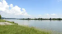Westlich des Dorfes liegt der ehemalige Baggersee und heutige Badesee Sarchinger Weiher.