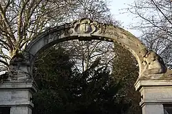 Die im Park gelegene Villa Henkel wurde 1903 von Elisabeth von Werner (geborene Neven DuMont) auf ererbtem Grundstück erbaut und 1915 an Fritz Henkel verkauft. Ein Jahr vor dem Verkauf war dort auch eine Orangerie entstanden. 1927 wurde die Villa im Landhausstil umgebaut, wobei auch die heutige Hofeinfahrt entstand. Nach dem Zweiten Weltkrieg nutzten zunächst Besatzungstruppen das Anwesen. 1960 wurde die Villa aufgrund mangelnder Nutzungsmöglichkeiten abgebrochen.[2] Zu ihren ehemaligen Nebengebäuden gehört ein stattliches Wohnhaus mit Wirtschaftsgebäude, das um 1910 entstand.