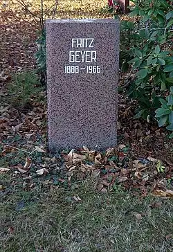 1917 heiratete Fritz Geyer die Quäkerin Margarete Roedding (1885–1952). Das Paar hatte zwei Söhne: Hans Martin (1920–2008) und Leonhard Ulrich (1921–1944).[3] Fritz Geyers Urne wurde in der Gräberanlage „Pergolenweg“ des Berliner Zentralfriedhofs Friedrichsfelde beigesetzt.