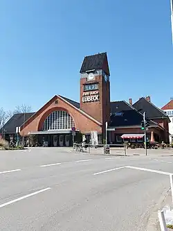 - Hauptbahnhof Lübeck (Inbetriebnahme 1908) für die Lübeck-Büchener Eisenbahn und deren gegenüberliegendes Verwaltungsgebäude (1907, fertiggestellt 1909)[18]
