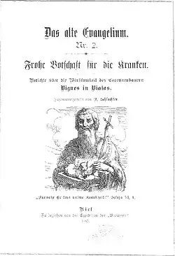 Bei der Broschüre Frohe Botschaft für die Kranken aus dem Jahre 1896 handelt es sich um einen Bericht von Franz Eugen Schlachter über den Krankenheiler Cyprian Vignes aus dem Cevennendorf Vialas in Südfrankreich. Schlachter war einer der Wenigen, die Vignes und seine Tätigkeit bekannt machten.