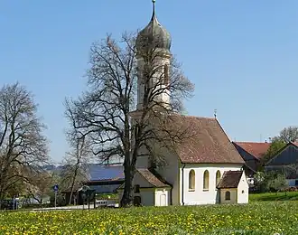 Die kath. Wallfahrtskirche St. Leonhard wurde um 1670 im spätgotischen Stil erbaut und besaß ursprünglich einen eigenen Gottesacker. Sie ist als Baudenkmal geschützt und überbaut einen spätmittelalterlichen Vorgängerbau, dessen untertägige Reste als Bodendenkmal geschützt sind.[1]:12