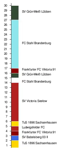 | SV Victoria Seelow | 1:1 | 3:1 | 3:2 | 1:2 | 1:1 | 0:0 | 0:2 | 3:1 | 1:0 | 1:2 | 0:0 | 0:2 | 3:3 | 2:0 | 7:1 | |