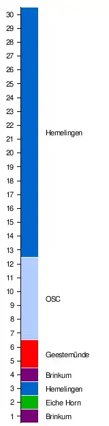 | SV Hemelingen | 6:0 | 1:0 | 6:0 | 4:1 | 3:1 | 5:2 | 4:3 | 3:0 | 5:1 | 2:2 | 5:0 | 4:1 | 1:3 | 2:0 | 6:0 | |||||