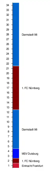 | 18. | SV Darmstadt 98 | 1:2 | 1:7 | 2:2 | 1:3 | 2:0 | 0:1 | 1:6 | 3:1 | 1:1 | 2:0 | 3:0 | 3:2 | 2:0 | 0:0 | 1:2 | 1:1 | 1:3 | |