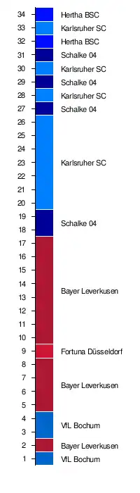 | 16. | FC Schalke 04 | 1:2 | 0:2 | 1:3 | 1:2 | 1:4 | 0:0 | 1:2 | 5:0 | 3:3 | 3:2 | 2:0 | 2:4 | 2:0 | 0:1 | 3:3 | 1:0 | 2:0 | |