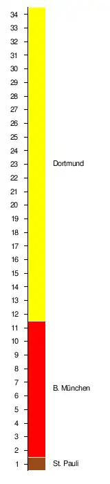| 1. | Borussia Dortmund | 3:1 | 0:0 | 2:1 | 1:1 | 1:2 | 4:1 | 3:1 | 1:1 | 6:3 | 3:2 | 3:0 | 3:0 | 2:0 | 1:0 | 1:1 | 6:0 | 5:0 | |