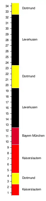 | 2. | Bayer 04 Leverkusen | 4:0 | 1:1 | 2:1 | 0:1 | 1:2 | 2:1 | 4:1 | 4:0 | 2:1 | 4:1 | 5:0 | 2:0 | 2:0 | 4:2 | 4:1 | 2:0 | 3:1 | |