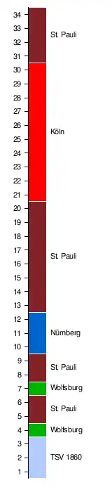 | 18. | FC St. Pauli | 1:2 | 2:2 | 2:1 | 0:0 | 0:2 | 0:3 | 1:1 | 1:2 | 0:3 | 3:1 | 0:4 | 1:1 | 4:0 | 0:1 | 2:3 | 1:0 | 1:2 | |