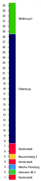 | VfB Oldenburg | 1:2 | 5:1 | 4:0 | 0:0 | 2:1 | 3:1 | 3:0 | 1:0 | 0:0 | 4:2 | 2:1 | 1:1 | 0:0 | 2:0 | 1:1 | 2:0 | 7:0 | |
