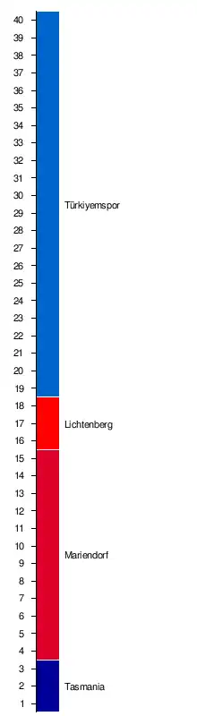 | 1. | Türkiyemspor Berlin | 40 | 30 | 7 | 3 | 144:31 | +113 | 97 |