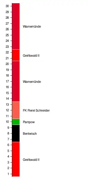 | 13. | FSV Kühlungsborn | 30 | 7 | 7 | 16 | 49:73 | −24 | 28 |