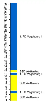 | 7. | SSV Gardelegen | 38 | 17 | 4 | 17 | 63:67 | −4 | 55 |