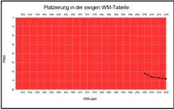| 3 WM-Spiele 0 Siege 1 Unentschieden 2 Niederlagen 0:4 Tore | |