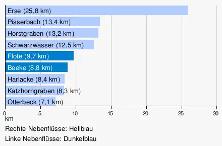 | Rechte Nebenflüsse | Alte Fuhse/Meesche, Schölke, Krähenriede, Auebach, Pisserbach, Glindbruchschölke, Schwarzwasser, Plockhorster-Eltzner Graben, Erse, Katzhorngraben, Harlacke, Horstgraben | |