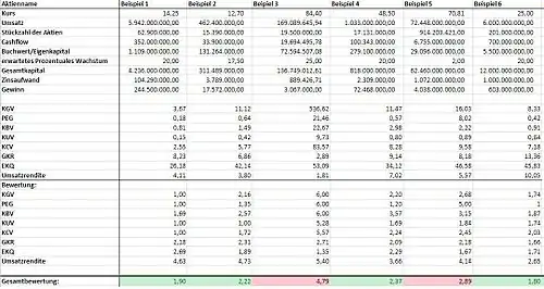 Die Fundamentalanalyse bedient sich insbesondere folgender Kennzahlen:[5]