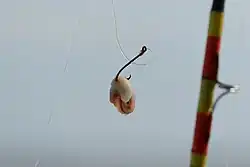 Eine weitere Methode, um Fische wie z. B. Rotaugen anzulocken, besteht darin, selbst gemachte Futterbälle ins Wasser zu werfen, die Paniermehl und Maden enthalten und Fische anlocken, während sie sich im Wasser auflösen.[5]