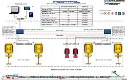 - Überwachung und Alarmmeldeanlage – Überwachung des Motormanagements auf unzulässige Betriebswerte, des Hydraulikdruck wichtiger Antriebsaggregate, der Wicklungstemperatur der Pumpenmotore etc.