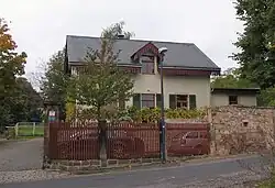 Das eingeschossige, geputzte Gebäude wurde 1893 wohl durch den Baumeister Adolf Neumann neu errichtet. Das villenartige Wohnhaus im Schweizerstil hat ein Satteldach, Sparrenwerk sowie Hängezapfen. Um die Gebäudeöffnungen finden sich Sandsteingewände.