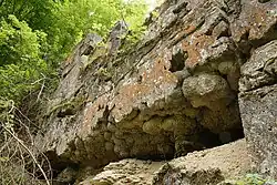 Auf einer Strecke von etwa 3,5 Kilometern am Oberlauf der Wiesaz, von der Talmühle bis nach Gönningen, gibt es fünf Terrassen mit meterhohen Kalksteinstufen auf einer Strecke, an denen sich die ehemaligen Steinbrüche befanden.[1][2]