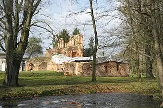 - Ruine des ehemaligen Gutshauses am südöstlichen Ende des Dorfes