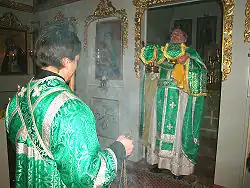 - Friedensektenie (Litanei) – die Litaneien während der Liturgie werden vom Diakon gesungen, wenn dieser fehlt, vom Priester selbst, und von der Gemeinde mit Gebetsrufen beantwortet.