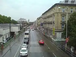 Äußerer Währinger Gürtel in Michelbeuern Richtung Süden, links abgesichert durch die typischen Stadtbahngeländer