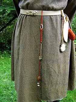 Diese Gegenstände eines Gürtelgehänges können zum einen Werkzeuge und Geräte des täglichen Gebrauchs wie Messer, Scheren, Kämme, Taschen, Beutel und zum anderen Schmuckgegenstände oder Amulette sein. Sie hängen einzeln oder in Gruppen entweder an ledernen oder textilen Nebenriemen oder an Kettchen vom Leibgürtel herab. Gürtelgehänge sind ein wichtiger Trachtbestandteil, die im Laufe der Geschichte schnellen Modewechseln unterworfen sind und damit bei archäologischen Funden einen sicheren Hinweis auf die Zeit und Region geben können.