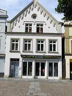 - Nr. 23: 3-gesch. neoklassizistisches giebelständiges Wohn- und Geschäftshaus mit Hintergebäude (D), Schaufassade mit Stufengiebel und halbrundem markanten Schmuckelement, saniert Ende der 1990er Jahre