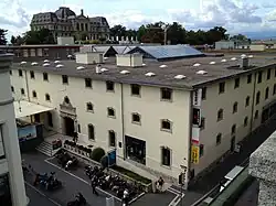 Die Société des Entrepôts de Lausanne (Lagerhausgesellschaft Lausanne) wurde im August 1884 gegründet und errichtete weitere Lagerhäuser neben dem 1885 errichteten staatlichen Zollhaus und Freilager (bâtiment douanier et port franc). Mit neun zu zehn Achsen ist das dreigeschossige Gebäude annähernd quadratisch angelegt. Die Büros werden durch einen modernen Lichthof beleuchtet. Das Bauwerk wurde als Kulturgut von regionaler Bedeutung (B-Objekt) in das schweizerische Inventar aufgenommen.[13] Die anderen Lagergebäude erfuhren ebenfalls Umnutzungen.