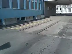 Die normalspurigen Güterwagen wurden von LO bzw. LG auf die Freifläche vor dem Bahnhofsgebäude geschoben und bis 1879 teuer und aufwändig von Pferden weiterbefördert. Ab diesem Jahr wurden die Waggons auf eine kleine Schiebebühne übergeben, die durch ein umlaufendes Seil bewegt wurde. Die Schiebebühne hatte eine Spurweite von 5,04 Meter und wurde lokal als «chariot transbordeur» bezeichnet.[2] Als «transbordeur en fosse» lag ihr Gleis unter dem Niveau der Anschlussgleise, die ohne Rampe angefahren werden konnten. Die Schiebebühne verteilte die Waggons auf einer Strecke von etwa 470 Metern[3] auf 44 Gleise der Anschliesser.