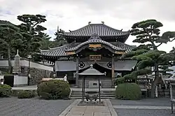 Passiert man die Haupthalle an der linken Seite, vorbei an dem Mönchsquartier (8) mit seinem Wandelgarten, gelangt man über eine Treppe und durch einen gedeckten Zugang zur Yakuyoke Daishidō (厄除 大師堂; Yakuyoke Daishidō; 6), zur Halle, in der an den Tempelgründer gedacht wird, hier mit dem Zusatz „Übelvertreiber“. Weiter oben steht die Awashimadō (粟島堂; 7), die den Awashima-Pilgern gewidmet ist. Von dort oben hat man einen schönen Blick über die Seto-Inlandsee.