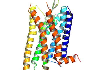 - ↑ K. Palczewski, T. Kumasaka, T. Hori, C. A. Behnke, H. Motoshima, B. A. Fox, I. Le Trong, D. C. Teller, T. Okada, R. E. Stenkamp, M. Yamamoto, M. Miyano: Crystal structure of rhodopsin: A G protein-coupled receptor. In: Science. Band 289, Nummer 5480, August 2000, S. 739–745, PMID 10926528.