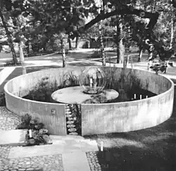 Der Landschaftsarchitekt Ernst Cramer, der sich selber eher als Künstler denn als Gärtner sah, formte mit Erdaufschüttungen, Wasser und einer modernen Eisenplastik eine abstrakte Landschaft. Die gesamte Anlage wurde unter den Aspekten der abstrakt-geometrischen Gesetzmässigkeiten erstellt. Während das breite Publikum von der Gestaltung irritiert war, reagierte die Fachwelt mit Begeisterung.[2] Der Architekt, Künstler und damalige Direktor der Kunstgewerbeschule Hans Fischli schrieb in einem Brief an Ernst Cramer: «Sie erzeugen ein Raumgefühl, das ich bisher unter freiem Himmel noch nie empfunden habe. Sie beweisen, dass mit klugem Geist und genauer Handhabe des Handwerks, mit dem kostbaren Material Erde nicht unbedingt so geschaffen werden muss, wie dies die Kräfte der Naturelemente tun. Sie schaffen nicht die Imitation einer natürlichen Gegebenheit, sondern Sie erzeugen ein Werk wie wir abstrakten Maler und Bildhauer dies mit konkreten Mitteln seit Jahren versuchen».[5]