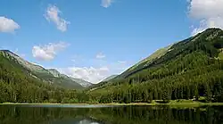 • Flora: Durch die Forstwirtschaft gibt es hauptsächlich Fichtenwälder. Mischwälder existieren aber in Verbindung mit der Lärche. Größere Laubbäume sind auf Tallagen beschränkt, dafür steigt die Grauerle an Bachläufen und wasserzügigen Hängen weit über die Waldgrenze hinaus. Die Latsche (Legföhre) bedeckt weite Teile der Hochtäler. Besonders bemerkenswert ist das Vorkommen des Sonnentaus, einer fleischfressenden Pflanze, im Pichlermoos. Das Pichlermoos[8] ist ein durch Entwässerung gefährdetes sauer-oligotrophes Latschen-Hochmoor mit niedrigem Fichtenbewuchs.[9] Unter den Blütenpflanzen gibt es Eisenhut, Gelber Enzian, Arnika und Fingerhut auch seltenere Pflanzen der Zentralalpen wie Türkenbund- und Feuerlilie. In den niederen Lagen findet man in Feuchtwiesen Schwertlilien.[10]