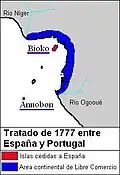 Nach dem Vertrag von Ildefonso (1777) und dem Vertrag von Pardo (1778) trat Portugal einige Ansprüche in der Region einschließlich Gabun an Spanien ab. Im Laufe des 19. Jahrhunderts kam die Region dann unter französische Kontrolle.