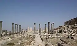 Bekannt ist die Stadt für zwei Theater. Das sogenannte Nordtheater bot Platz für 6000 Besucher; von ihm ist heute wenig Bausubstanz erhalten. Das im 2. Jahrhundert gebaute Westtheater liegt in den Westabhang der Akropolis eingebettet. Seine Sitzstufen bieten ungefähr 3000 Zuschauern Platz und bestehen – wie auch die halbkreisförmige Orchestra – vollständig aus Basalt. Der Zuschauerraum besteht aus drei Stockwerken, die jeweils in keilförmige Sitzabteilungen aufgeteilt sind. Vom ursprünglichen Bühnengebäude, das einst die Sicht auf die umliegende Landschaft verdeckte, ist nur wenig erhalten geblieben. In der Antike dienten die Theater nicht nur der Aufführung von Schauspielen, sondern auch der Veranstaltung religiöser und politischer Feste. Das Westtheater wurde im 8. Jahrhundert durch ein Erdbeben teilweise zerstört.
