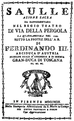 - ↑ Saulle. Libretto (italienisch), Florenz 1799. Digitalisat des Museo internazionale e biblioteca della musica di Bologna.