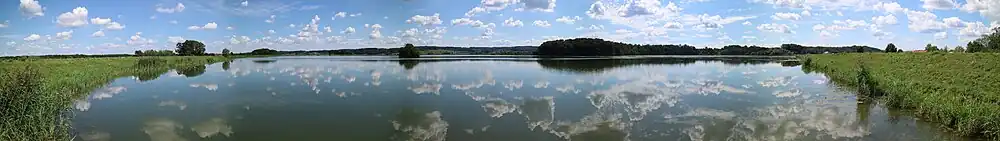 Unter diesen Voraussetzungen beherbergt der See zahlreiche Organismen wie Muscheln und diverse Fischarten, darunter Barsche, Brachsen, Hechte, Rotaugen, Silberkarpfen, Welse und Zander.[5][6] Neben der Habitatfunktion verleiht der schlammige Boden dem Wasser eine bräunliche Farbe und Trübung. Die langsame Strömung lässt im Westabschnitt außerdem ein dichtes Netz von Wasser- und Sumpfpflanzen gedeihen.[5][7]