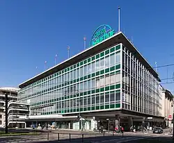 1956/1957 erweiterte Hermann Wunderlich, Architekt des Kaufhof-Konzerns, den Bau um Verkaufsflächen hinter einer Aluminium-Vorhangfassade im Firmen-Grün. An der Cäcilienstraße wurde nach dem Entwurf von Reinhold Clüser ein mehrgeschossiges Parkhaus mit einer Rampe in Spindelform angelegt (1991/1992 erweitert).
