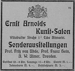 1919 wurde die 2. expressionistische Ausstellung „Der Sturm“ mit Gemälden, Plastiken und Grafiken von Expressionisten, Futuristen und Kubisten gezeigt. Ab 1920 bis 1922 stellte die Dresdner Sezession Gruppe 1919 regelmäßig in der Galerie Arnold aus.